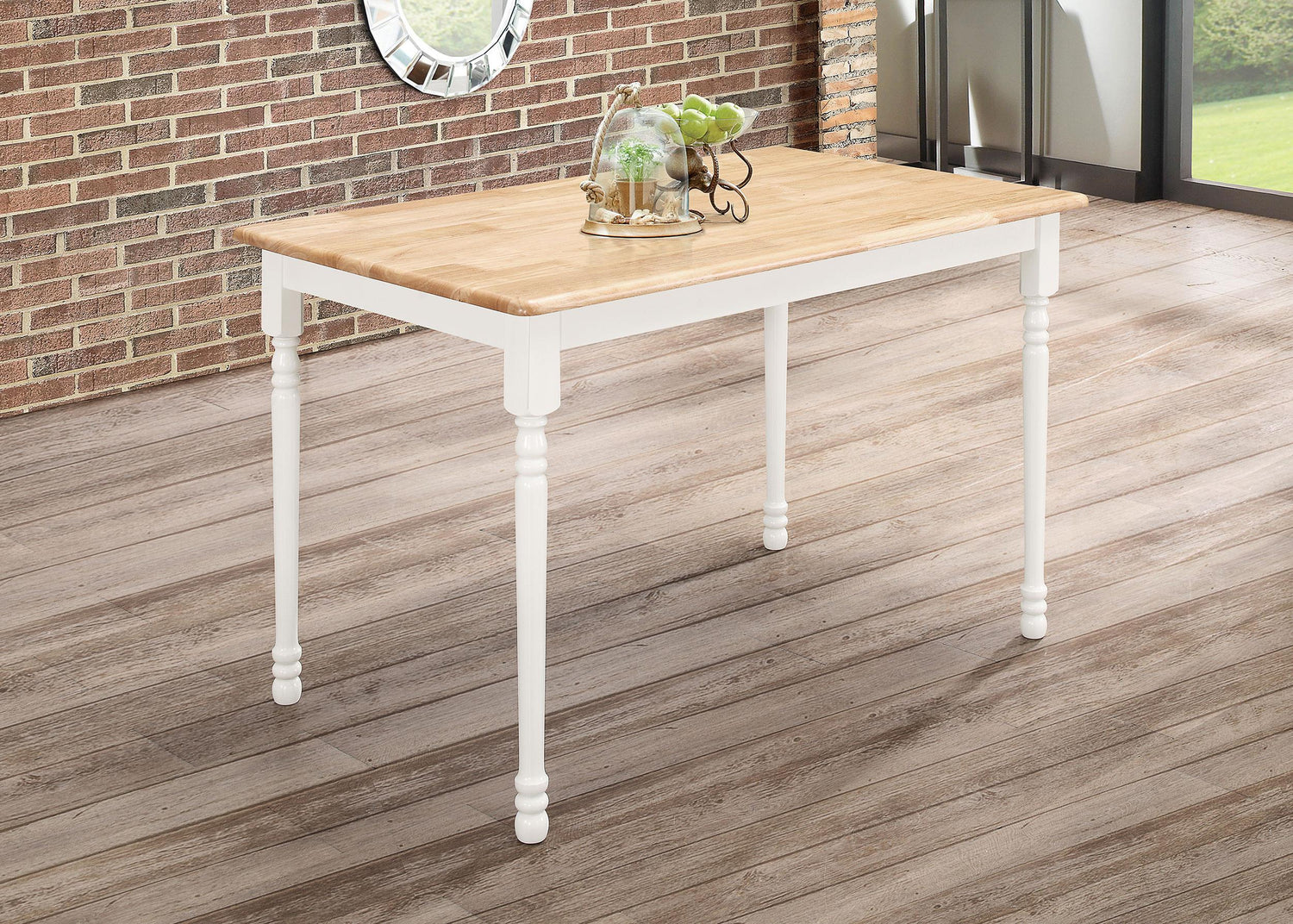 This rustic dining table looks great in a cozy breakfast nook or dining area. Two-tone finish makes this table go great with two-tone dining chairs (not included). Brown solid wood table top is spacious enough for a large breakfast or four-course family dinner. Four white table legs have clean lines and offer durability. Table secretly doubles as a poker table.