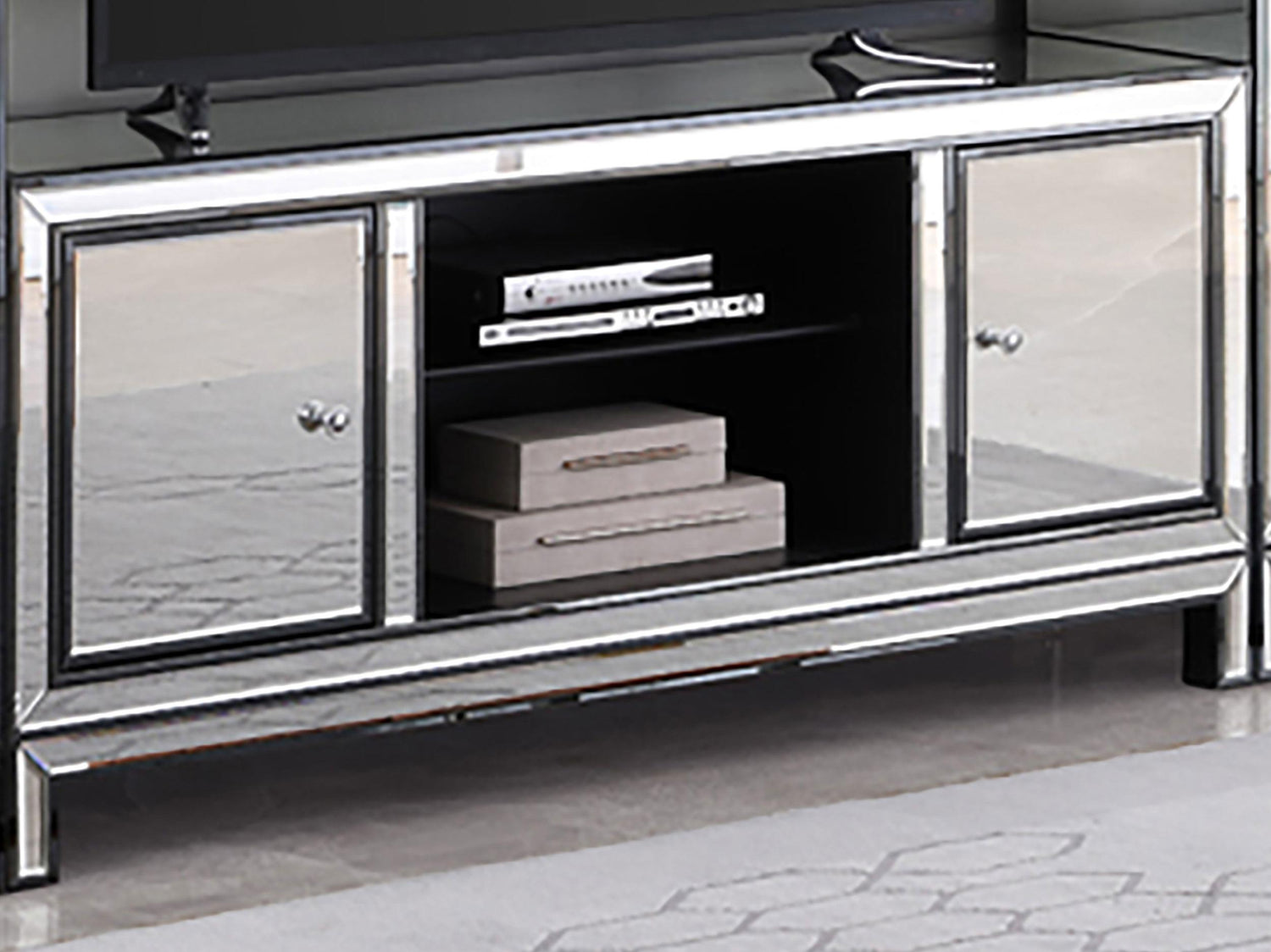 Natalia 2-door Mirrored 60" TV Stand Black and Silver